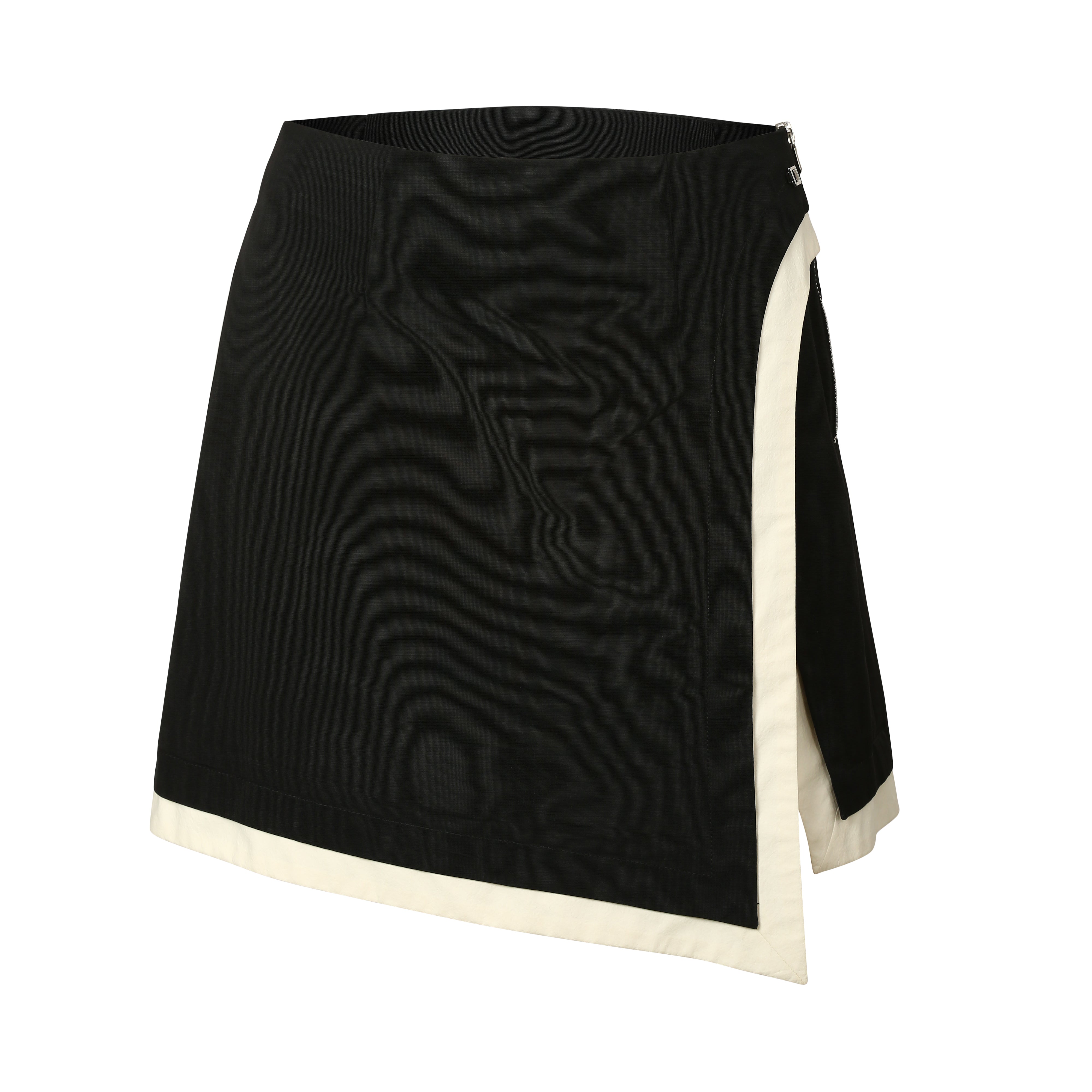 Skirt Anna offers a modern twist on monochrome dressing. Cut in a flattering wrap-style silhouette, this piece features a structured black base accented with crisp ivory contrast edging. The clean lines and asymmetrical hem create visual interest, making it a versatile option for both minimal and statement looks. Pair Anna with a tucked-in blouse or a cropped top for a polished yet directional outfit.